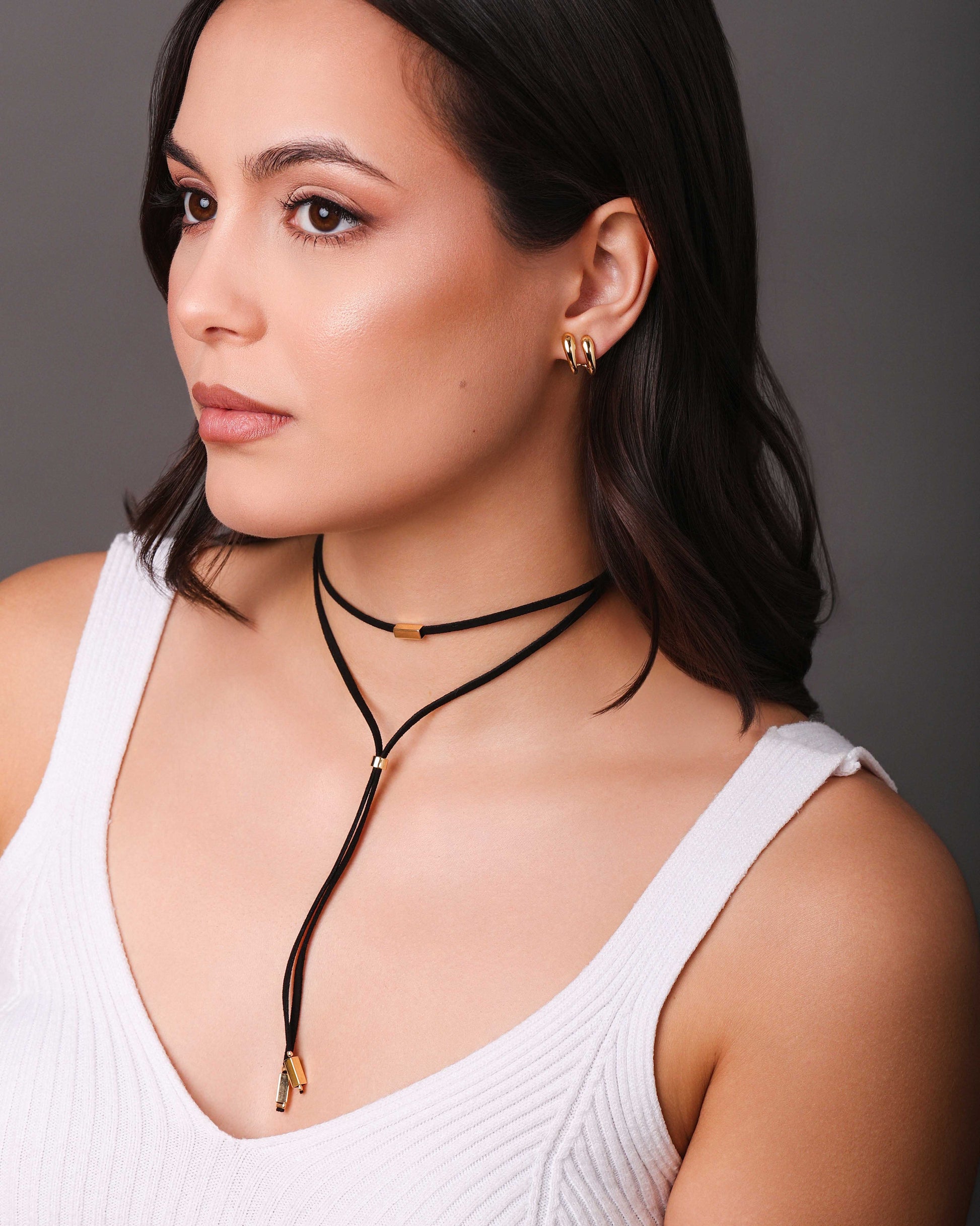 Fio Gravata Dupla Camurça Preta